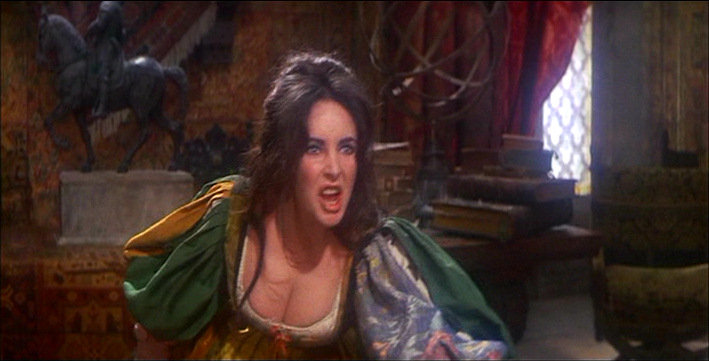 Now, besides just being an ass whipper, Katherina has a couple of obvious points of resentment against her younger sister Bianca. Mostly she's resentful because everybody likes nice Bianca better than her, especially Daddy. [Michael Hordern as Baptista] On top of which, Bianca is ready to marry, but Daddy won't let her until somebody marries the shrew. So now for Sis' sake, everyone is anxious to saddle the hatefully contented single Katherina with some, any old damned husband. Oh yes, she's really going to get it...
