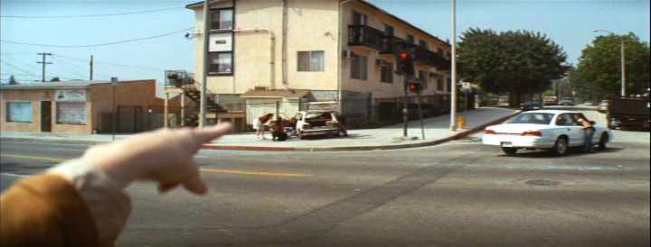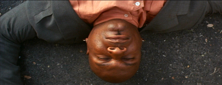 Marsellus Wallace wakes up mad in the middle of the street after Butch bodily ran into him with his car